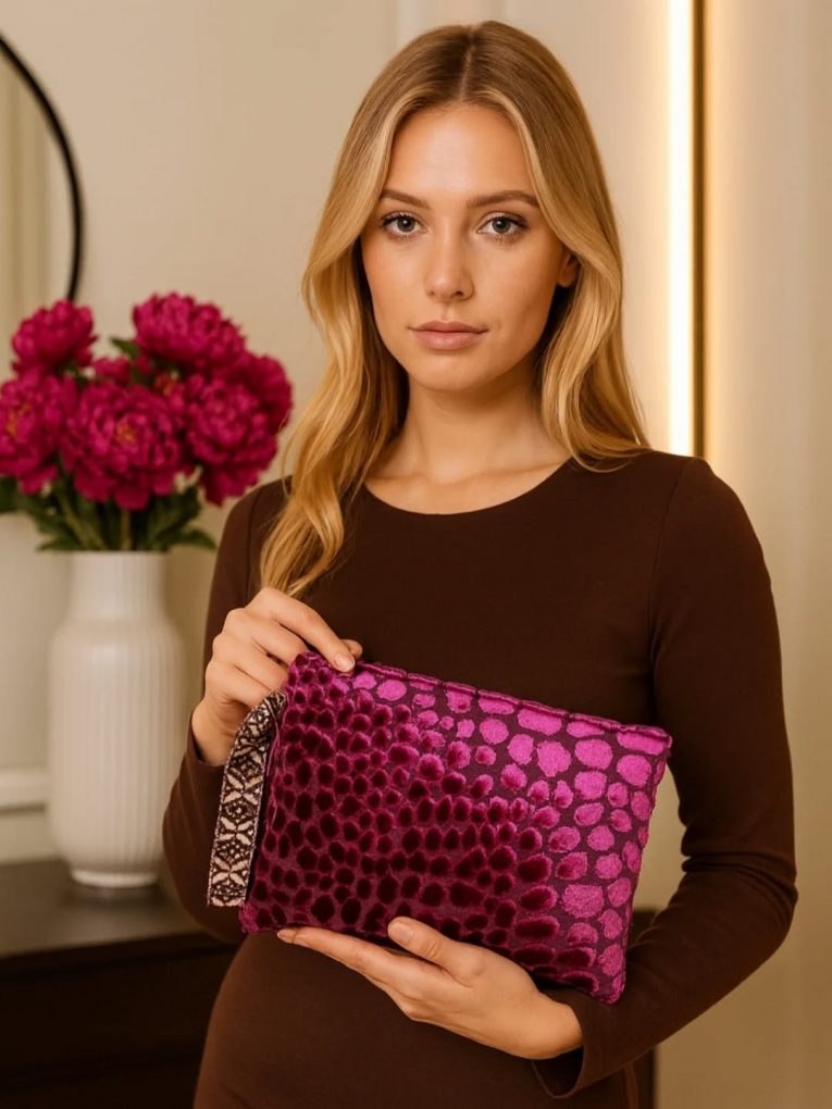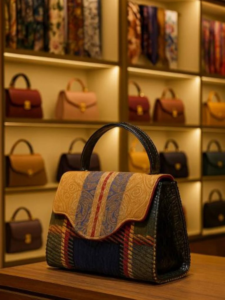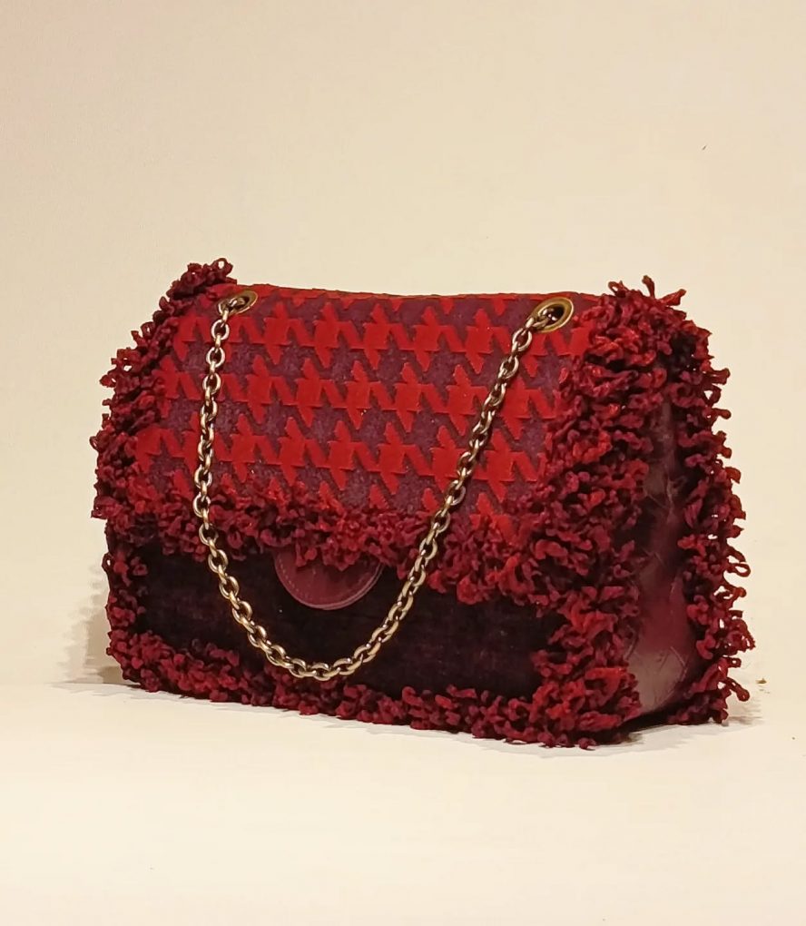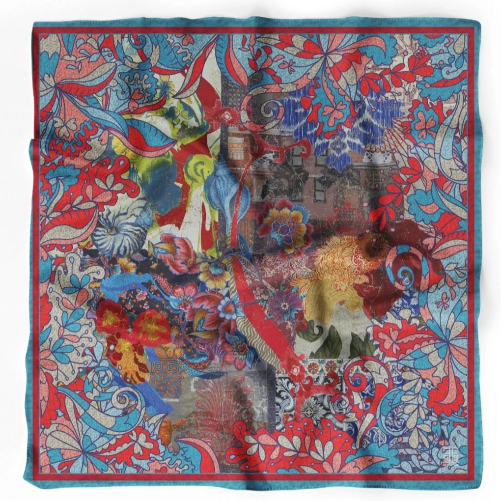 A. Kollintza’s love for fabric was drawn early in his intensive contact with interior design, while the idea of using fabrics in unexpected applications-constructions, gave him an additional artistic outlet. The artwork with the technique of textile collage preceded and followed useful space objects such as patchwork throw pillows. In the next stage, the idea of accessories was born, such as our silk scarves produced in Soufli, as limited wearable copies of A. Kollintza’s works of art, the statement bags made of luxurious fabrics and sought-after leathers, as well as the jewels that combine semi-precious stones with fabric hand-sewn elements, all with the philosophy of one-of-a-kind and with a maximalist design approach. Our accessories-small works of art, with a modern classic personality, are addressed to women of all ages who want to feel unique and classy, without hesitating to catch all eyes of admiration.