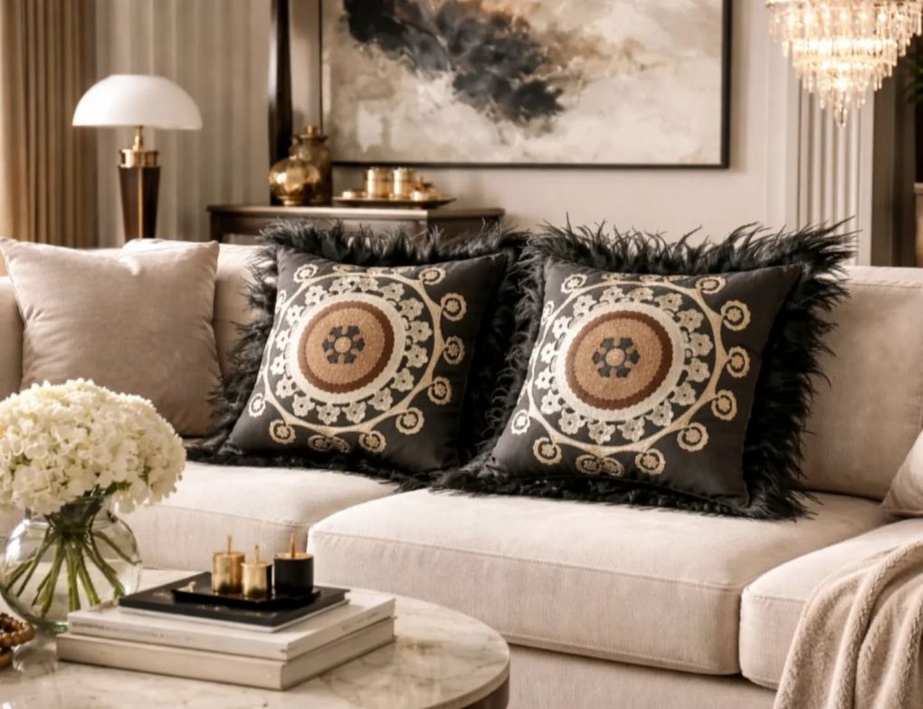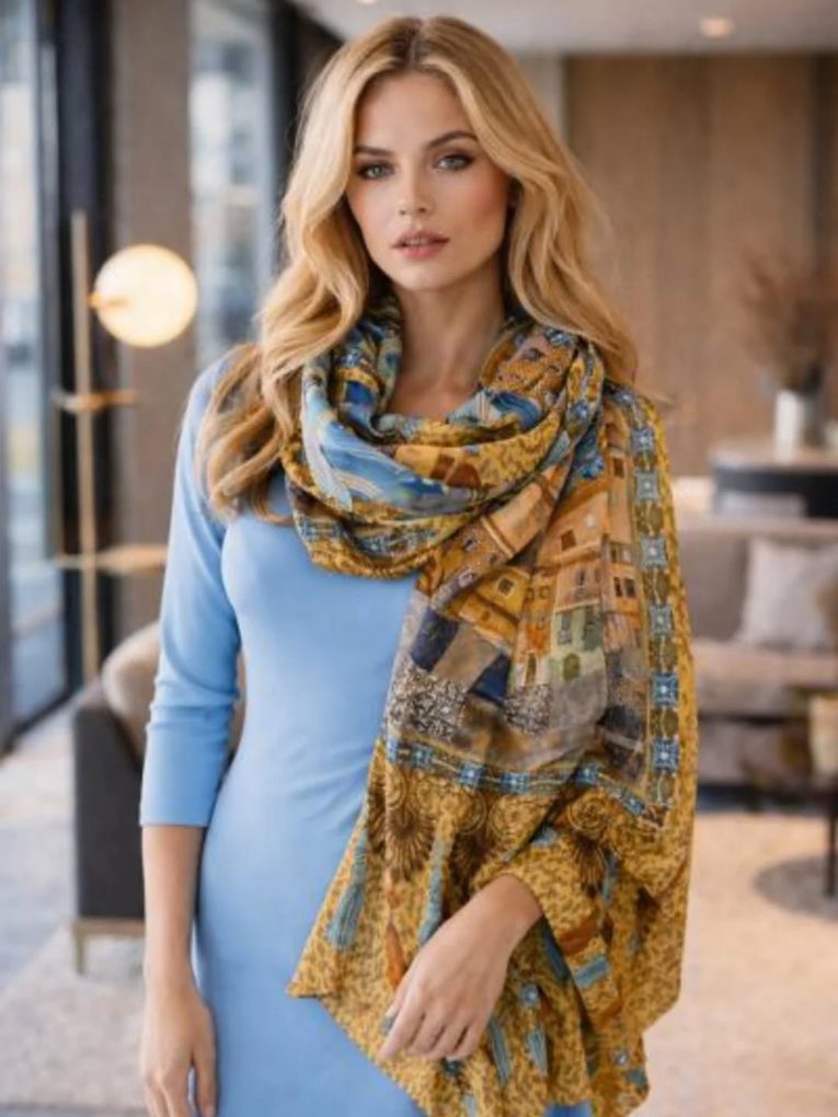 A. Kollintza’s love for fabric was drawn early in his intensive contact with interior design, while the idea of using fabrics in unexpected applications-constructions, gave him an additional artistic outlet. The artwork with the technique of textile collage preceded and followed useful space objects such as patchwork throw pillows. In the next stage, the idea of accessories was born, such as our silk scarves produced in Soufli, as limited wearable copies of A. Kollintza’s works of art, the statement bags made of luxurious fabrics and sought-after leathers, as well as the jewels that combine semi-precious stones with fabric hand-sewn elements, all with the philosophy of one-of-a-kind and with a maximalist design approach. Our accessories-small works of art, with a modern classic personality, are addressed to women of all ages who want to feel unique and classy, without hesitating to catch all eyes of admiration.